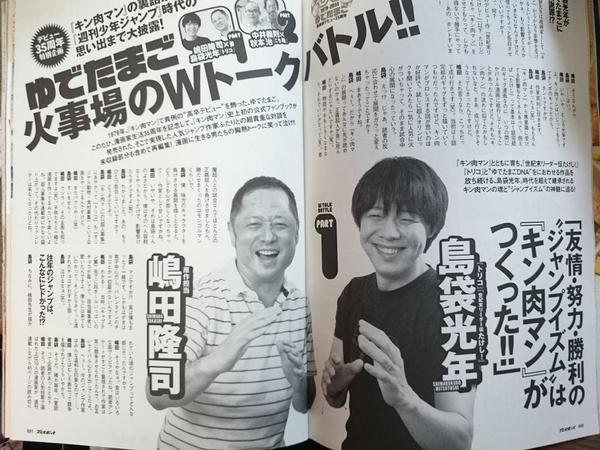 ゆでたまご嶋田 只今発売中 キン肉マン超人閻魔帳 でゆでたまごとトリコの島袋光年先生 こち亀の秋本治先生との対談があまりに面白過ぎるため 急遽本日発売の 週プレに未収録分が掲載されています 是非ご覧ください Http T Co Zrt94o8nfo Twitter